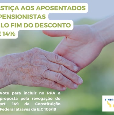 Aposentados e pensionistas não vamos desistir de lutar pelo fim do confisco absurdo de 14% em seus proventos!